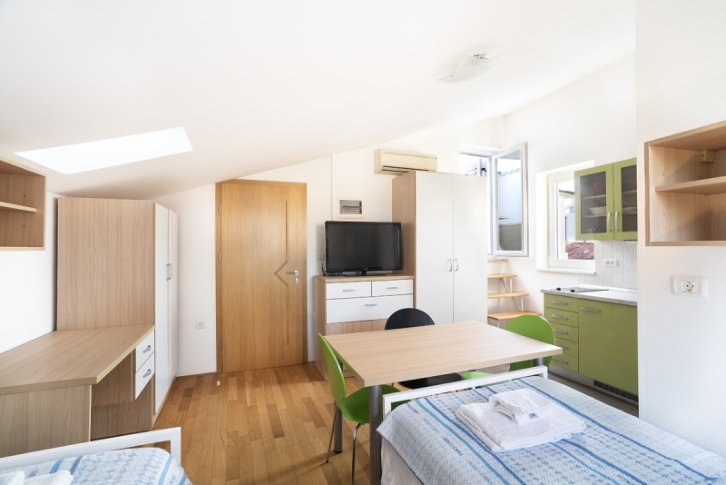 2 Personen3. Obergeschoss, Studiowohnung mit 2 Betten, Küchenblock, Bad mit Dusche, Klimaanlage, Kabelfernsehen, Internet, vollkommen eingerichtet, Terrasse.